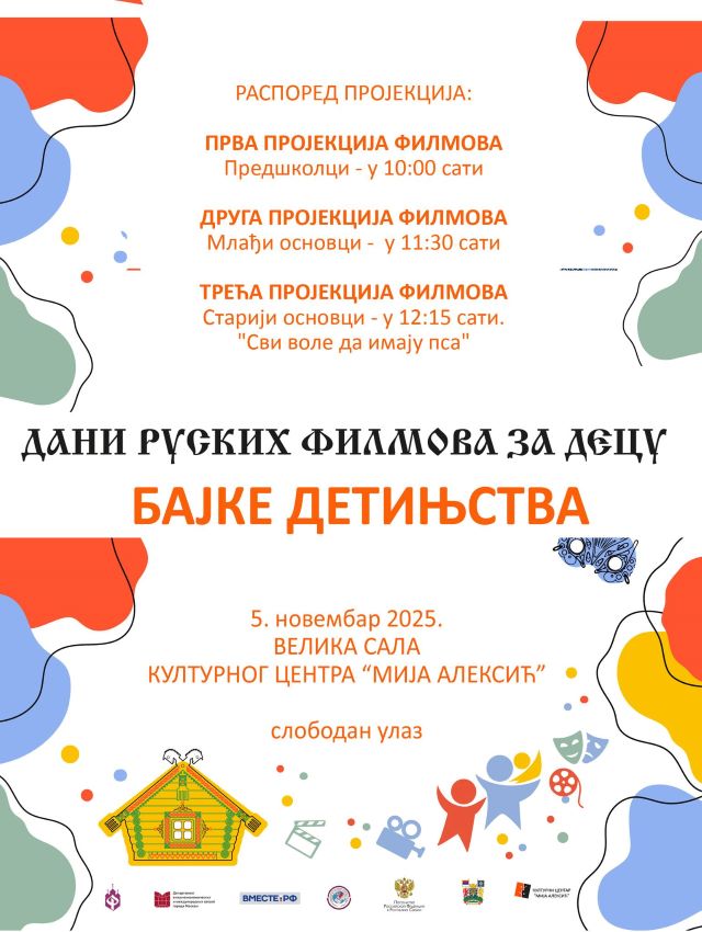 Reč je o projekciji ruskih filmova za najmlađe. Program je namenjen mališanima iz vrtića (10:00 sati) i učenicima osnovnih škola (11:30 i 12:15).