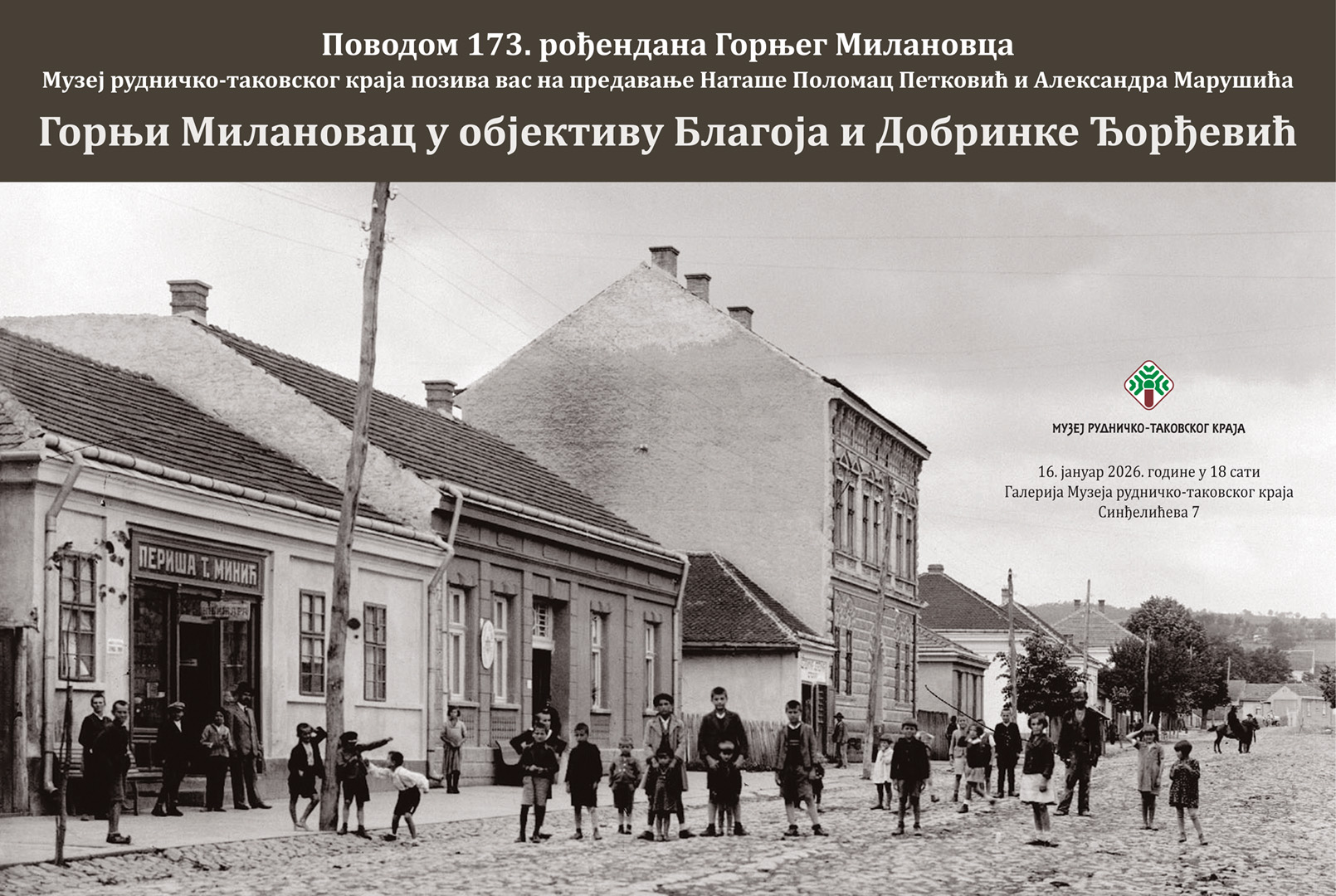 Povodom 173 godine od osnivanja našeg grada u petak 16. januara sa početkom u 18 sati u Galeriji Muzeja rudničko-takovskog kraja biće održano predavanje „Gornji Milanovac u objektivu Blagoja i Dobrinke Đorđević“. Kustosi Nataša Polomac Petković i Aleksandar Marušić govoriće o ovoj značajnoj fotografskoj porodici koja je svojim objektivima zabeležila izgled nekadašnjeg grada, njegov duh i svakodnevni život. Kroz ne toliko poznate fotografije, njihovo „čitanje“ i priču o možemo reći, pionirima fotografije u Gornjem Milanovcu, predavanje će pružiti uvid u to kako je grad rastao i menjao se, ali i kako su ovi fotografi doprineli očuvanju sećanja na njegovu prošlost.