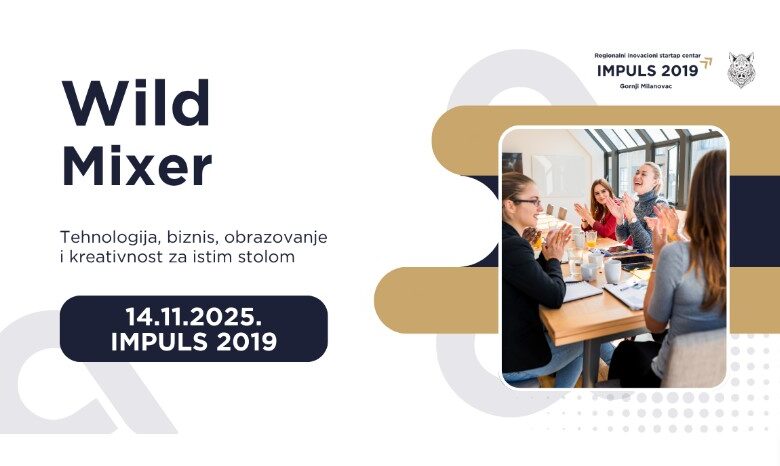 U petak, 14. novembra, u Regionalnom inovacionom startap centru Impuls 2019 biće održan događaj Wild Mixer, veče za sve koji žele da razgovaraju sa ljudima iz različitih profesija i industrija, dobiju korisne savete ili jednostavno prošire svoju mrežu poslovnih kontakata. Ideja organizatora je da Gornjem Milanovcu ponude događaj kakav se u manjim sredinama retko viđa, susret u kom se spajaju različite industrije, iskustva i načini razmišljanja.