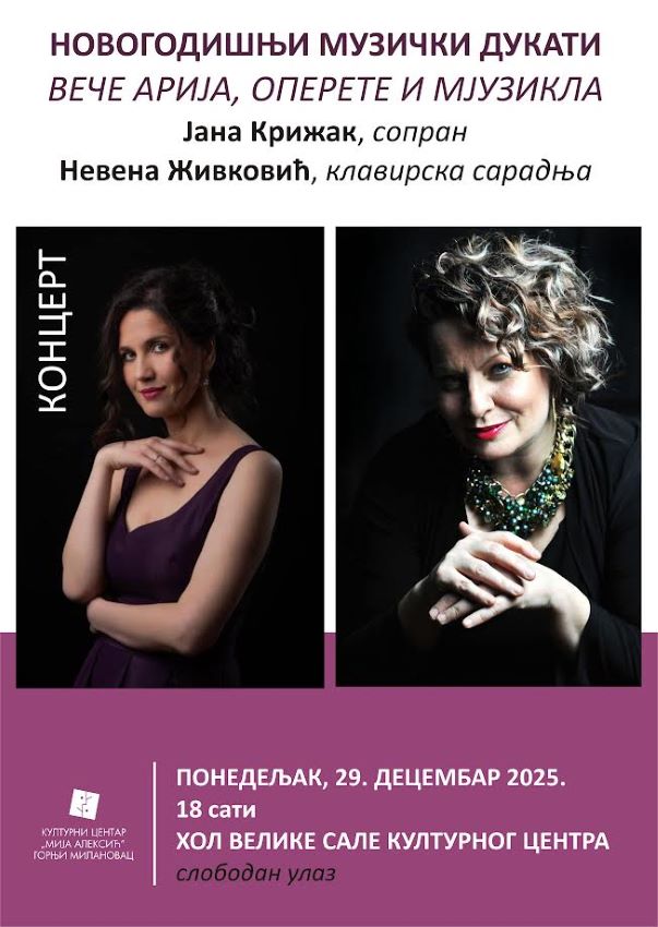 decembra 2025. godine u holu ispred velike sale Kulturnog centra u Gornjem Milanovcu održaće koncert