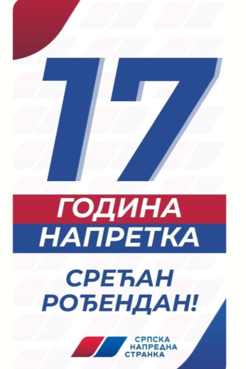 Opštinski odbor Srpske napredne stranke Gornji Milanovac, uz veliku zahvalnost građanima na podršci i poverenju, svim članovima i simpatizerima čestita 17. rođendan!
