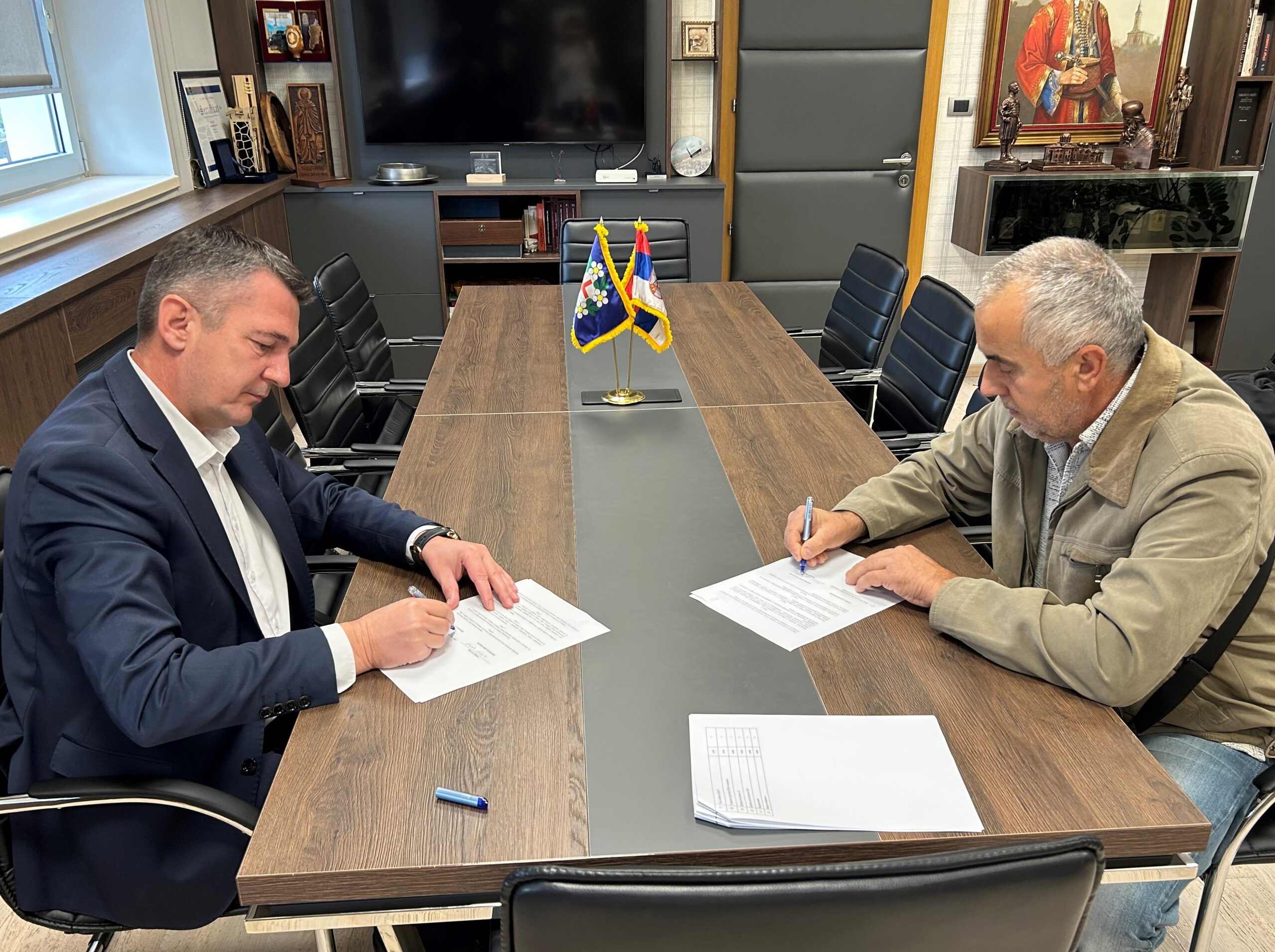 U kabinetu predsednika opštine Gornji Milanovac Dejana Kovačevića potpisani su ugovori za dodelu građevinskog materijala i opreme za završetak i adaptaciju stambenih objekata sa licima koja su se, kao izbegla, doselila u Gornji Milanovac.