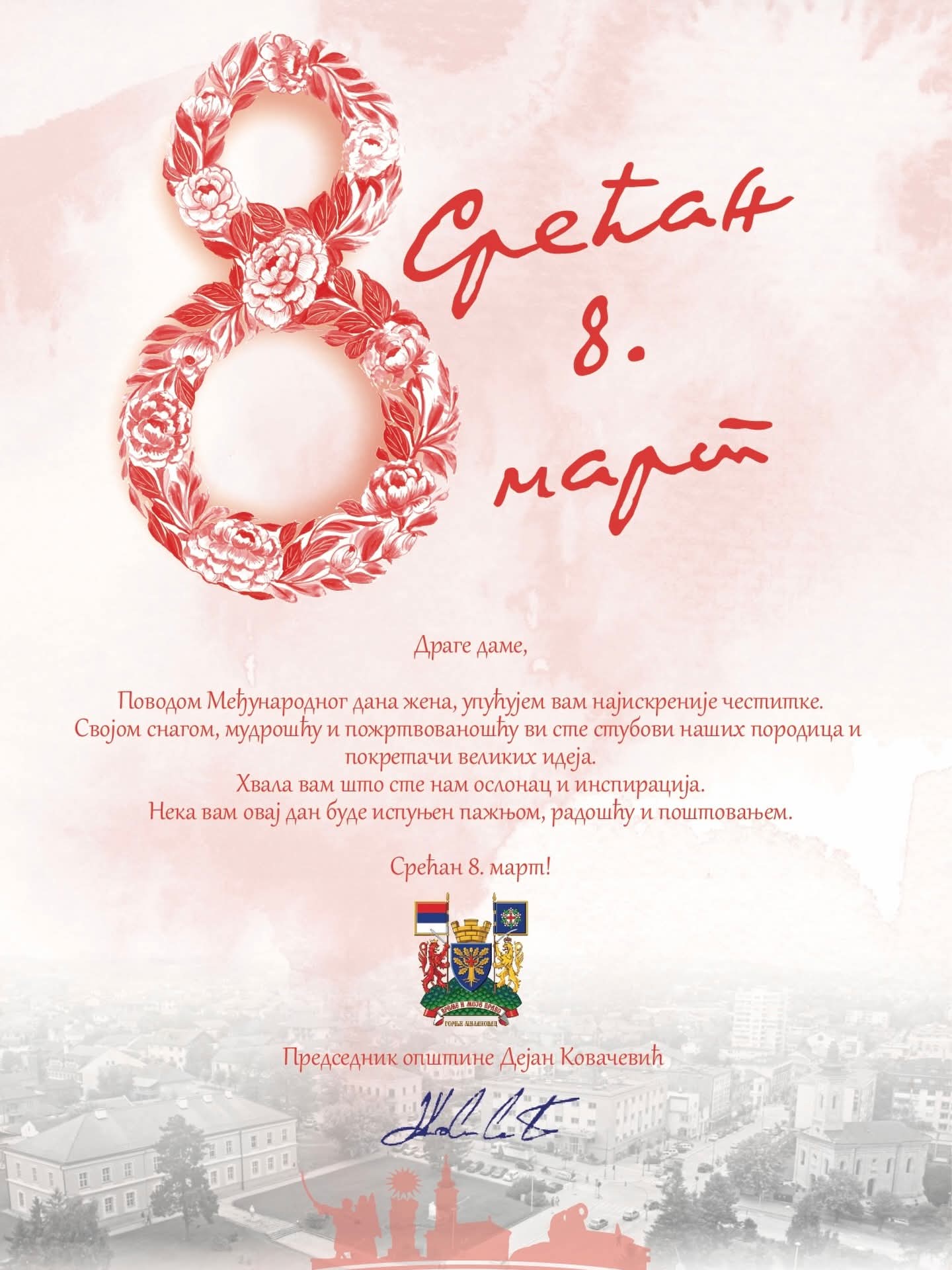 Predsednik opštine Dejan Kovačević uputio je čestitke svim Milanovčankama povodom Međunarodnog dana žena.
