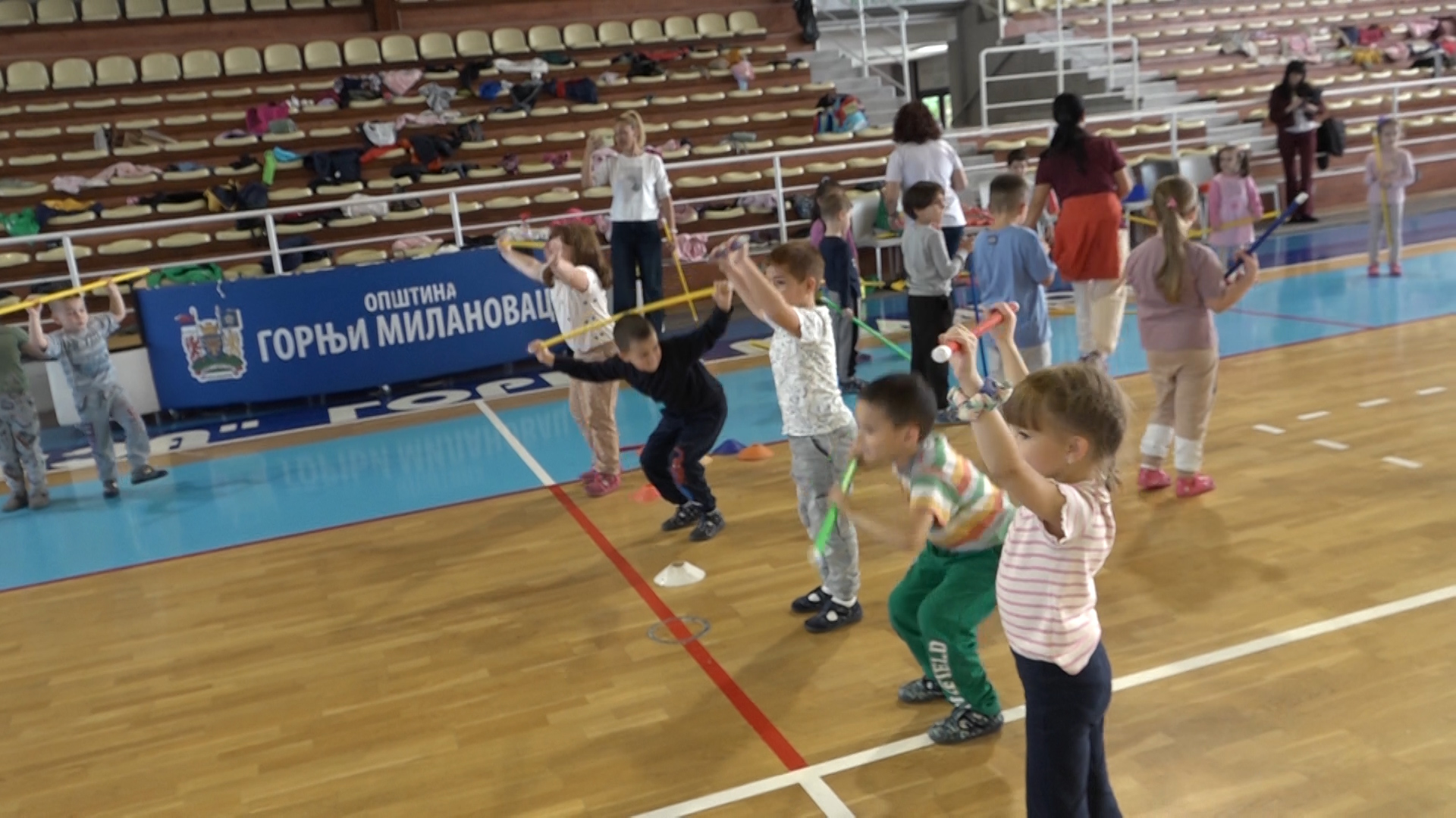 Sportska hala “Breza” u Gornjem Milanovcu danas je bila prepuna dečije radosti i fizičke aktivnosti. U okviru obeležavanja Dečije nedelje, održan je tradicionalni Sportski dan za mališane Predškolske ustanove “Sunce”, koja je ujedno bila i organizator celog događaja.