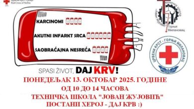 Crveni krst Gornji Milanovac i Zavod za transfuziju krvi Kragujevac – u osnivanju organizuju akciju Dobrovoljnog davanja krvi u ponedeljak…