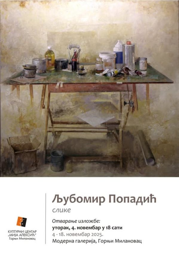 Ljubomir Popadić, priznati i nagrađivani slikar, rodom iz Tivta (Crna Gora), umetnik, čije slike krase zidove brojnih muzeja, galerija i privatnih kolekcija kod nas i u inostranstvu, predstaviće u utorak, 4. novembra 2025. godine u Modernoj galeriji Kulturnog centra svoje stvaralaštvo.