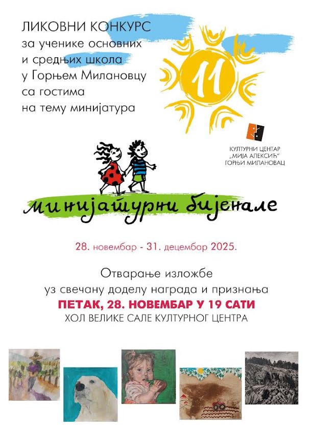 – Smatrali smo da je naša dužnost, kao organizatora jedne od najvećih manifestacija sa temom minijatura (Međunarodno bijenale umetnosti minijature), da podstaknemo decu, pre svih učenike osnovnih i srednjih škola sa područja Srbije, na aktivno stvaralačko izražavanje u ovom posebnom formatu (10cm x 10cm) i na taj način, vremenom, pomognemo razvijanje njihovog odnosa prema ovoj likovnoj disciplini. To smo postigli na lokalnom nivou i smatram da smo zreli, da Dečiji bijenale podignemo na jedan viši, nacionalni nivo. Želja nam je da deca, nakon učešća na Minijaturnom bijenalu stvore neki poseban odnos sa likovnim stvaralaštvom. To je moguće, deca Gornjeg Milanovca su dobar primer. Mladi umetnici već porede teme, materijale, veštine i tehnike stvaranja umetničkih dela. Za dve decenije, Minijaturni bijenale je pokrenut 2005. godine, postigli smo da deca, sa velikom pažnjom prate radove sa bliskim ili potpuno različitim načinom razmišljanja, a to je uspeh, kaže Valentina Nađ, urednik dečjeg programa Kulturnog centra.