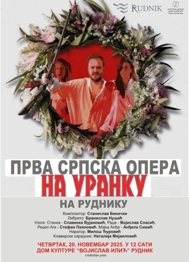 Muzičko-scensko delo srpskog kompozitora Stanislava Biničkog “Na uranku”, za koje je operski libreto napisao Branislav Nušić u četvrtak, 20. novembra 2025. godine u 12 sati biće izvedeno na Rudniku u sali Doma kulture “Vojislav Ilić”.