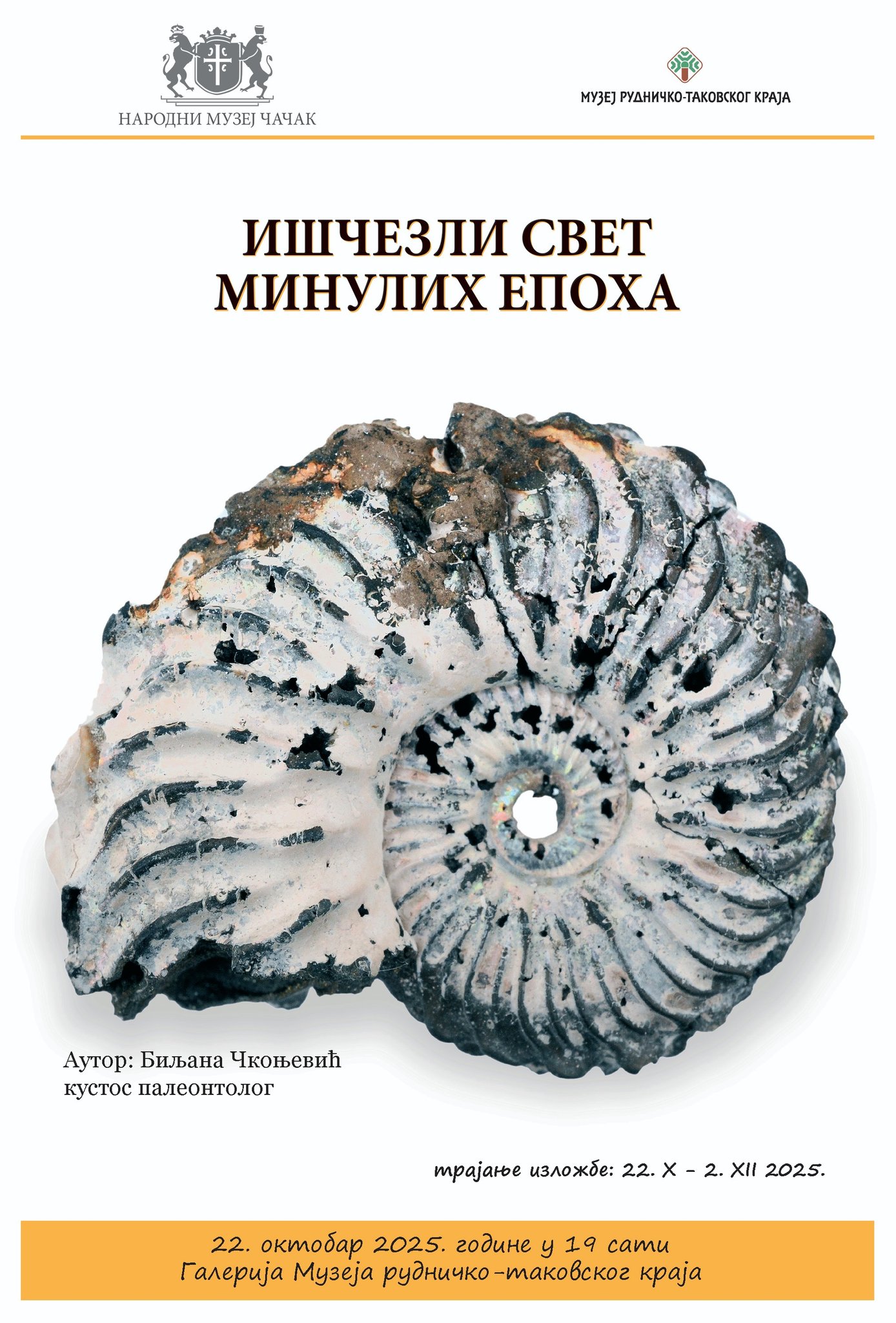 U Muzeju rudničko-takovskog kraja sutra, u sredu 22. oktobra 2025. godine, u 19 sati biće otvorena izložba pod nazivom “Iščezli svet minulih epoha”, autorke Biljane Čkonjević, paleontologa Narodnog muzeja Čačak.